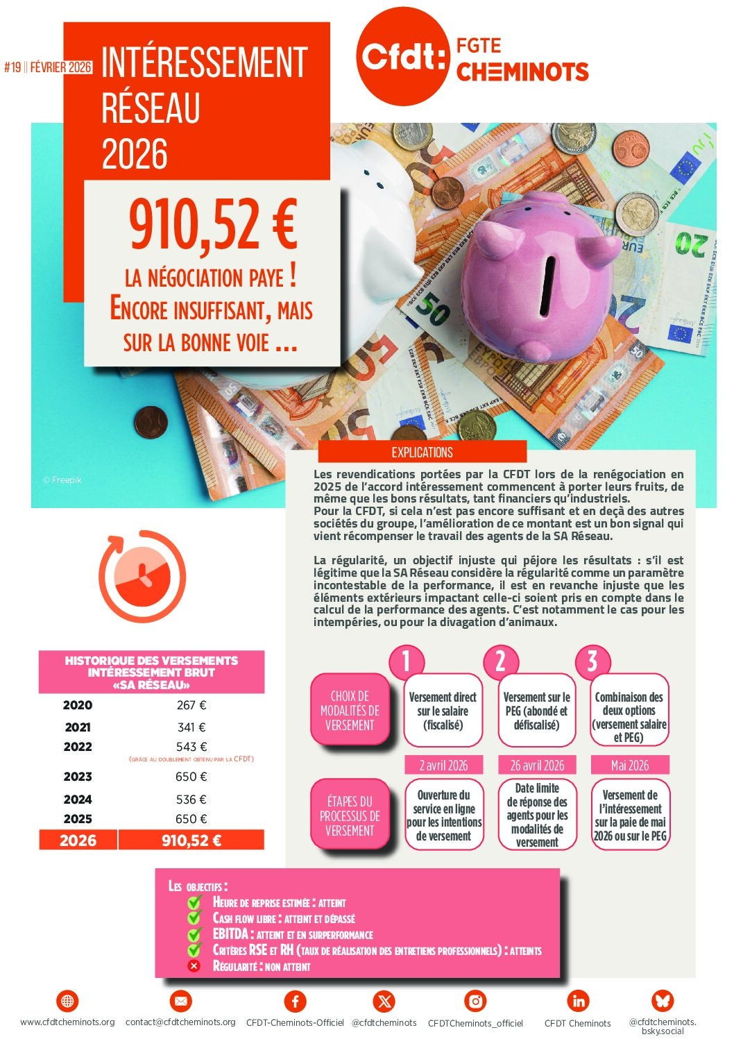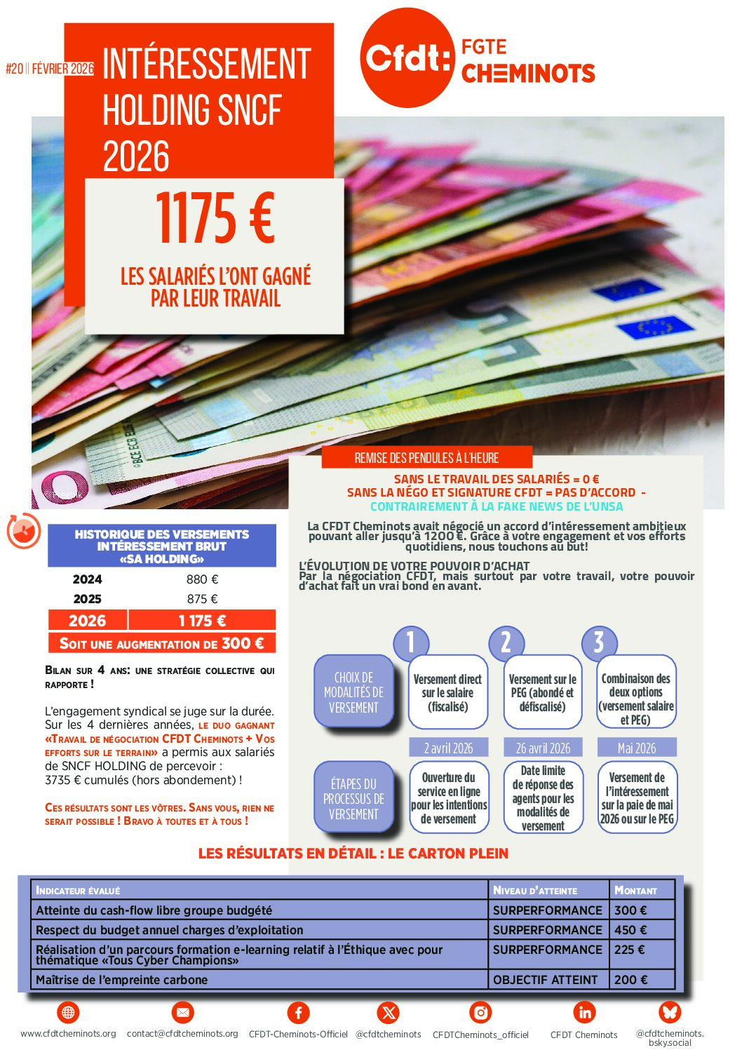 Après négociation avec la Direction, les deux seules organisations syndicales signataires de l’accord d’intéressement ont obtenu que le plafond de 1000 € possibles soit dépassé. Cette revendication portée par la CFDT a enfin été entendue et prise en compte.