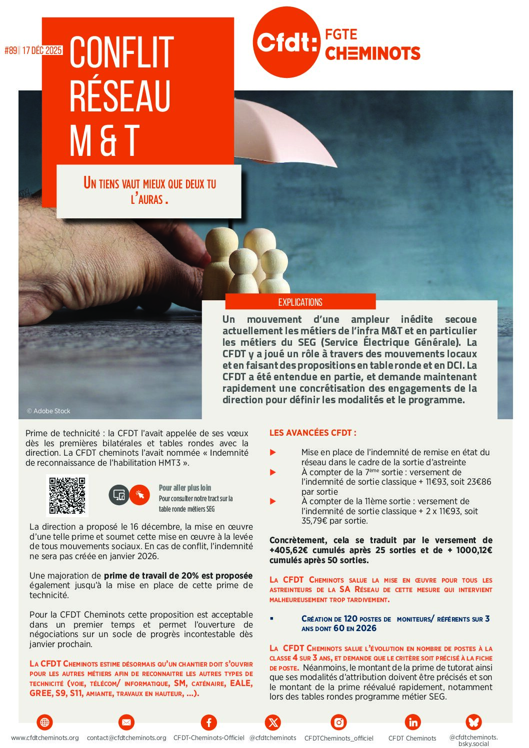 - Pour obtenir l’amélioration des conditions de restauration et de coupure pour tous les agents en production de Réseau, de Voyageurs, de la SA de tête, de Fret et de G&C.